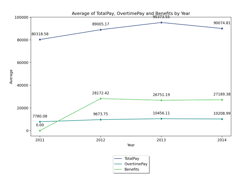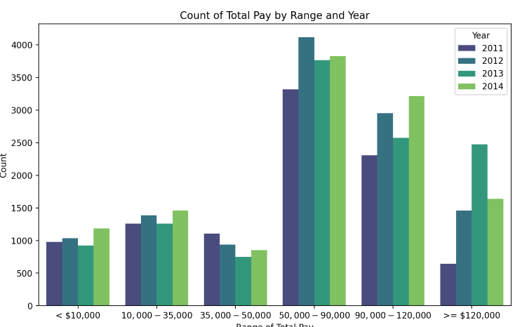 One way to understand how a city government works is by looking at who it employs and how its employees are compensated. This data contains the job title, and compensation for San Francisco city employees on an annual basis from 2011 to 2014. The final product was a link made available in streamlit to visualize the data interactively, and create new metrics by Jobs or by Year. The link to check the dashboards is below